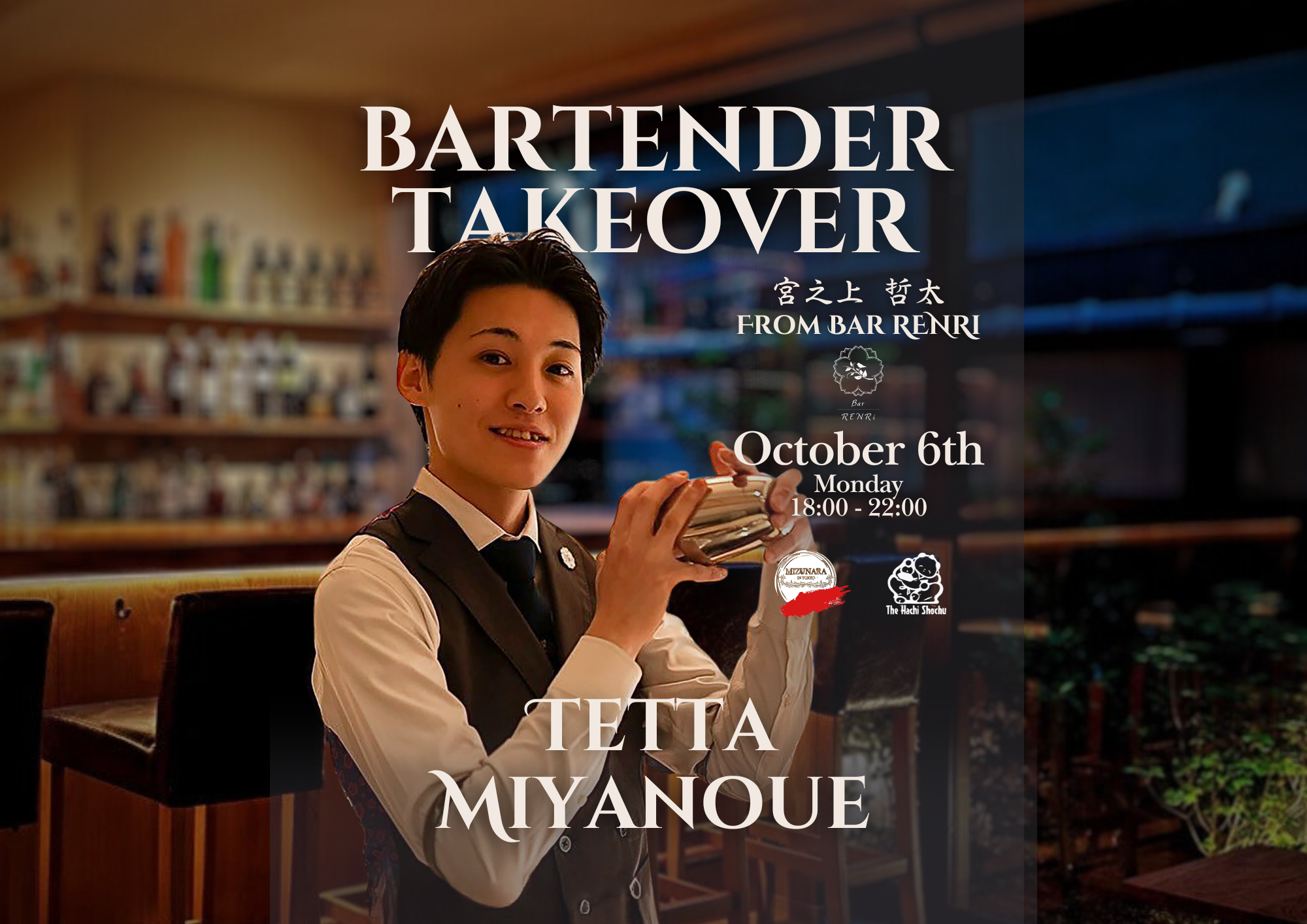 On Monday, Oct 6th, Mizunara: In Tokyo will be hosting Tetta Miyanoue san of Bar Renri from 18:00 - 22:00 for a takeover wherein he will be presenting his special Cocktails with The Hachi Shochu. One day only!